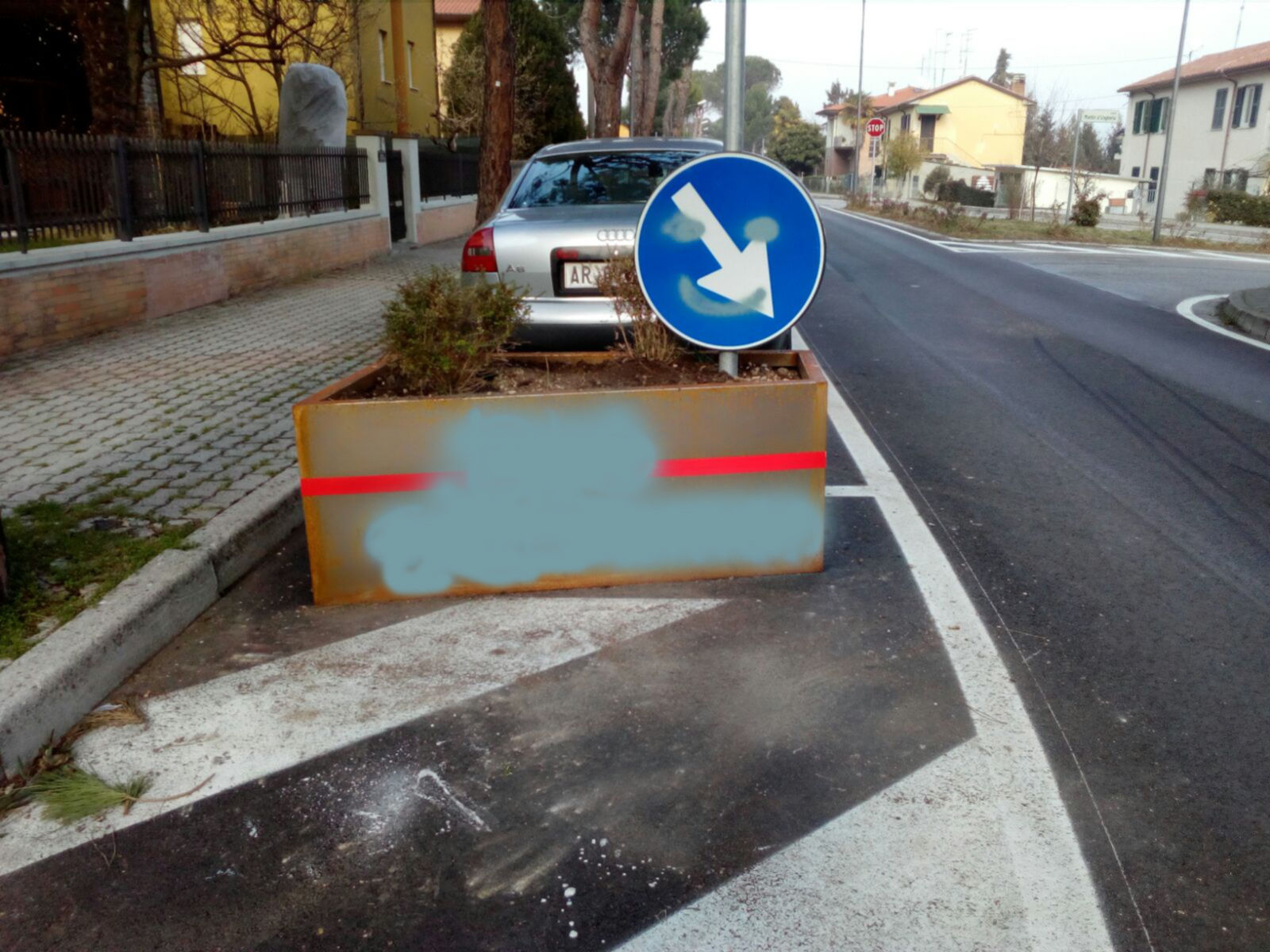 Nella fotografia qui sotto una delle fioriere imbrattate