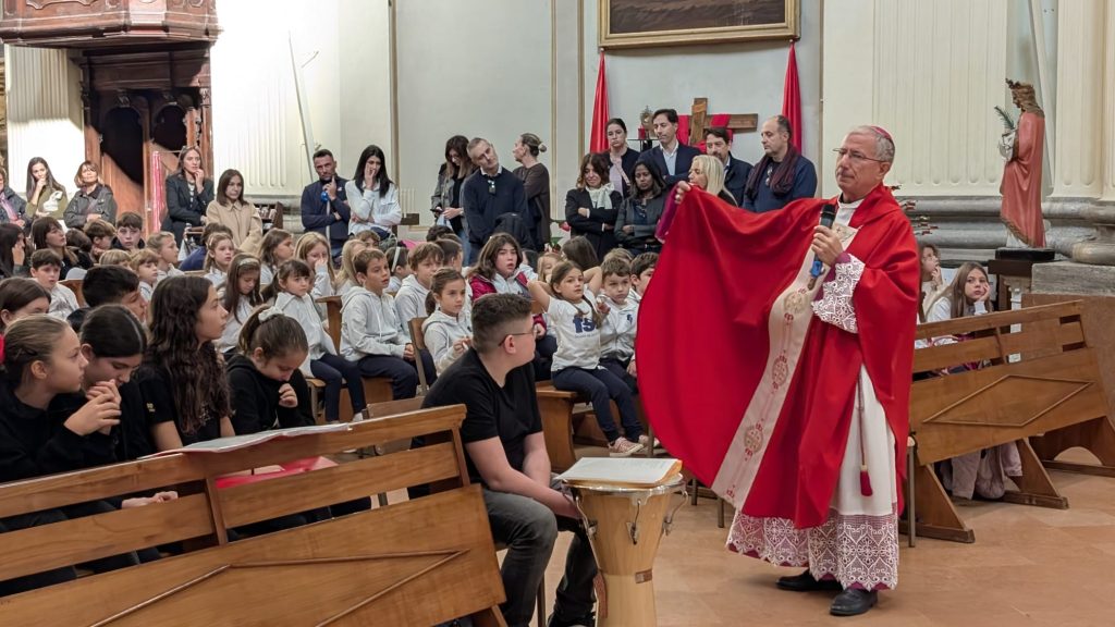 «Gesù è nato piccolo ed è cresciuto; giocava, cantava, aveva amici, come voi – ha proseguito monsignor Caiazzo –. Gesù è venuto a stare in mezzo a noi per dire alla gente che bisogna smettere di fare il male. Lui stesso si è fatto fare male, accettando una morte ignobile, brutta. Il crocifisso appeso nelle chiese ce lo ricorda. Gli uomini quando perdono il contatto con Dio perdono il contatto con l’umano».