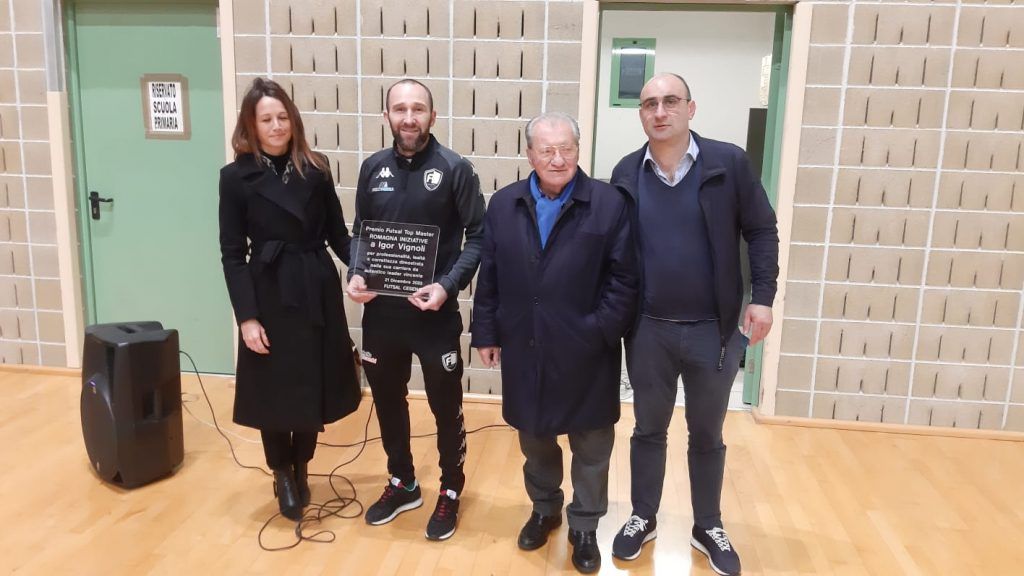 Il primo premio è stato assegnato a Igor Vignoli, che la scorsa stagione è stato uno dei grandi protagonisti della cavalcata della Futsal Cesena verso la promozione in A2. Vignoli, ritiratosi al termine della scorsa stagione, ha deciso di continuare la propria avventura in riva al Savio in qualità di collaboratore tecnico e ieri sera ha ritirato il premio come riconoscimento alla carriera.