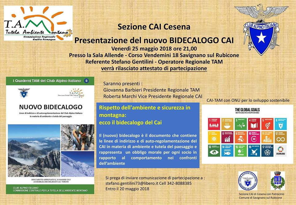 Venerdì 25 maggio alle 21 nella sala Allende a Savignano sul Rubicone Stefano Gentilini, operatore regionale Tam (Tutela ambiente montano) presenta il nuovo bidecalogo del Cai.