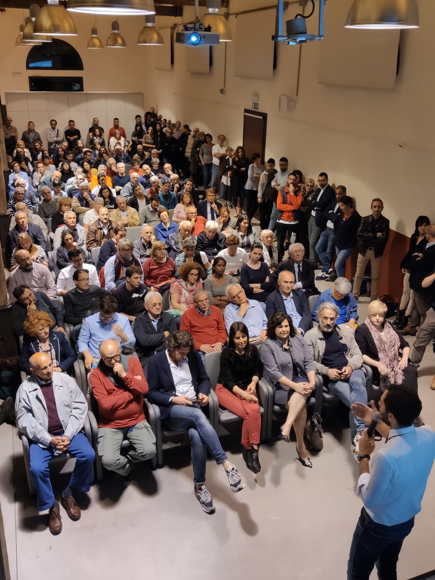 Nonostante la serata fredda e la pioggia battente, il salone dell’ex Macello era gremito, tanto che qualcuno non è riuscito ad accedere al salone.