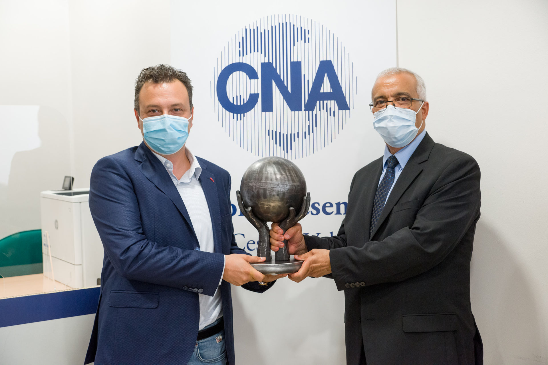 La visita si è conclusa presso la sede della Cna di Cesena, dove il presidente Federico Giovannetti, alla presenza di una delegazione di imprenditori, fra cui anche alcuni operatori stranieri, ha regalato al console un’opera dell’artista Davide Caprili rappresentate due mani che sorreggono il mondo. “La speranza – spiega Giovannetti – è che si possa assistere alla nascita di una generazione di cittadini del mondo che facciano dell’inclusione e dell’accoglienza principi irrinunciabili del vivere insieme”.
