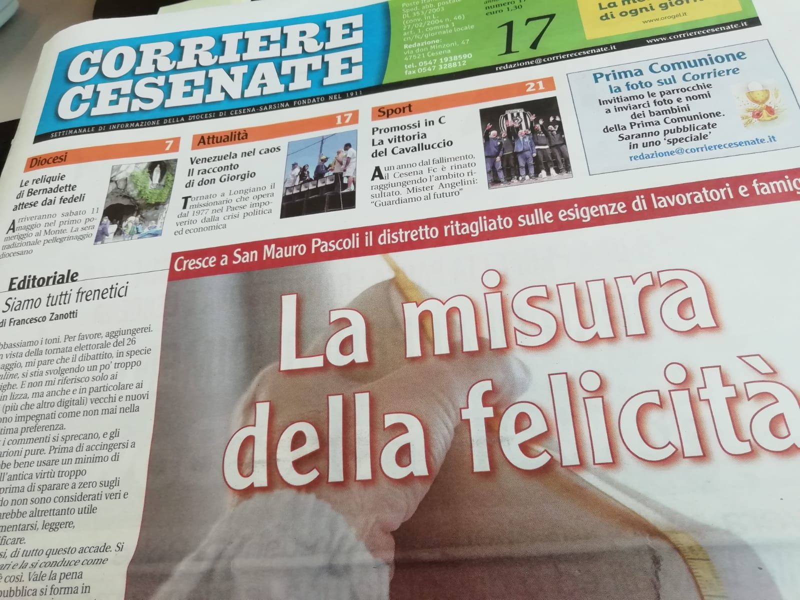Un primo piano dedicato quindi al lavoro, il racconto del caos in Venezuela dalle parole di don Giorgio, la gioia dei bianconeri passati in serie C, e tantissime altre notizie nel nuovo numero del settimanale diocesano Corriere Cesenate in edicola da giovedì 9 maggio.