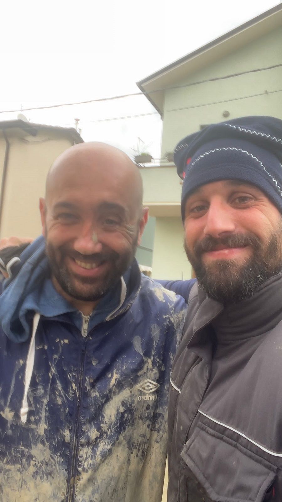 “A stamattina siamo 1010”. Lo dice al telefono Elia Travaglini (nella foto in basso con un amico di Torriana), 31 anni, volontario della Protezione civile. Assieme a tre amici, tutti meno di 30 anni, Federica Samorè, Elisa Bianchi e Alessio Guarino, ha dato vita al “Gruppo amici Cesena”.