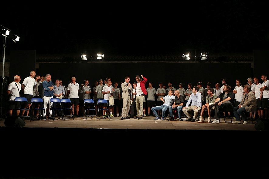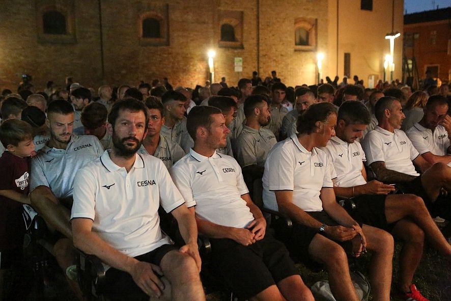 La presentazione della squadra di calcio della città è una tradizione a cui tutti gli sportivi sono legati, e che si tiene ormai da diverse stagioni al Chiostro di san Francesco. Non si poteva quindi pensare di concludere questa prima parte del mese di agosto, che ha guidato i bianconeri verso il ritiro di Acquapartita, iniziato domenica, senza il classico rito che vede i giocatori sfilare sul palco che si trova dietro la Biblioteca Malatestiana. Solitamente, l’occasione era utile per prendere confidenza con le nuove facce che avrebbero giocato al Manuzzi; quest’estate invece è necessario scoprire i volti di praticamente tutti i componenti della rosa bianconera, dato che i giocatori sono in larga percentuale debuttanti con la maglia del Cesena. A tenere banco anche il sindaco Lucchi, che ha promesso di riportare presto sulle casacche da gioco il Cavalluccio, storico simbolo della società e l’allenatore Angelini.