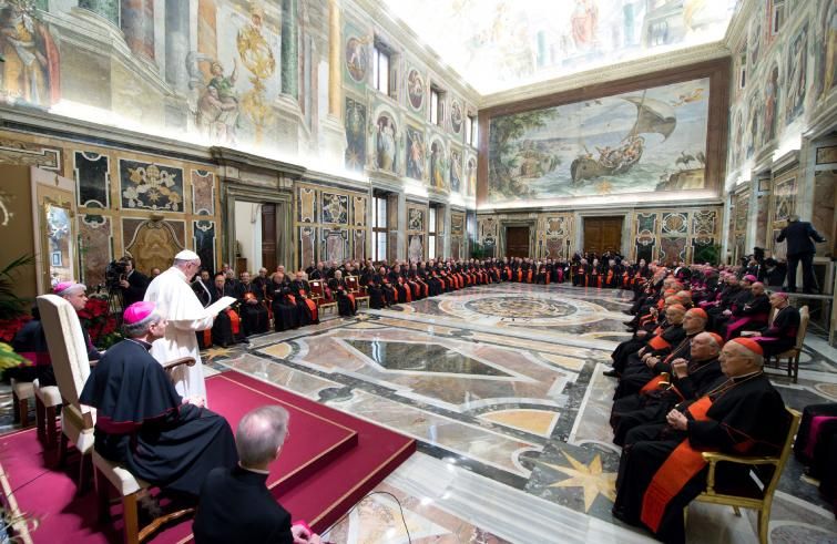 Ieri mattina, nell’Aula Paolo VI, a Roma, in Vaticano, il papa Francesco ha incontrato i dipendenti della Santa Sede e dello Stato della Città del Vaticano, con i rispettivi familiari, per gli auguri di Natale.