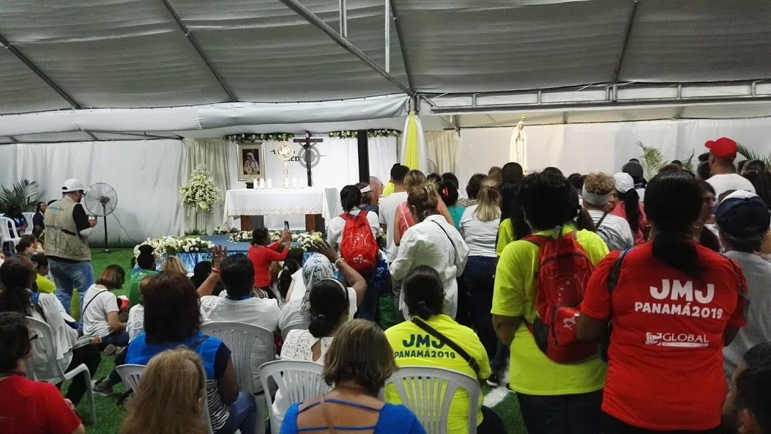 Sono centinaia gli artisti che scenderanno in pista in queste giornate panamensi. I palchi maggiori allestiti sono otto e gli eventi molto numerosi. C’è solo l’imbarazzo della scelta. E’ un’altra Gmg, quella che nessuno racconta. Come nessuno narra dei giovanotti che si inginocchiano davanti al Santissimo (foto sotto) o fanno la fila, di sera, per pregare. Pare impossibile, eppure accade. Queste sono le storie delle Gmg, un miracolo che prosegue negli anni, ma che i grandi network non raccontano.