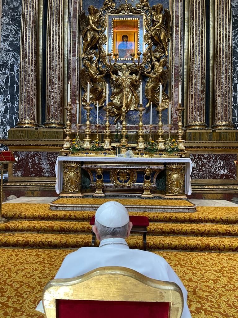 Prima di far rientro in Vaticano, il Papa si è recato nella Basilica di Santa Maria Maggiore dove, davanti all’icona della Vergine Salus populi romani, ha ringraziato per il buon esito del suo intervento chirurgico, rivolgendoLe una preghiera per tutti i malati, in particolare quelli incontrati durante i giorni della sua degenza. Poco prima delle 12 ha fatto rientro a Casa Santa Marta.