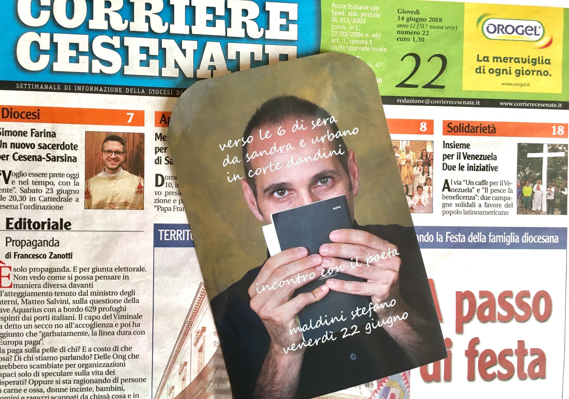 Il poeta Stefano Maldini nel pomeriggio di venerdì, intorno alle 18, sarà ospite nell’atelier dei fotografi Sandra e Urbano in Corte Dandini a Cesena. Come spesso avviene, la coppia di fotografi accoglie poeti e letterati perché possano esporre le proprie opere condividendole con una platea di appassionati del genere. Maldini vive a Cesena, dove è nato il 12 agosto 1972. Ha collaborato con l’Università di Bologna e con gli editori Mondadori e Touring Club, per i quali ha curato numerose guide. Insegnante alle scuole superiori, è autore di diverse pubblicazioni.