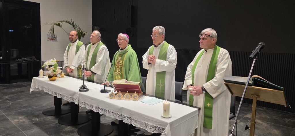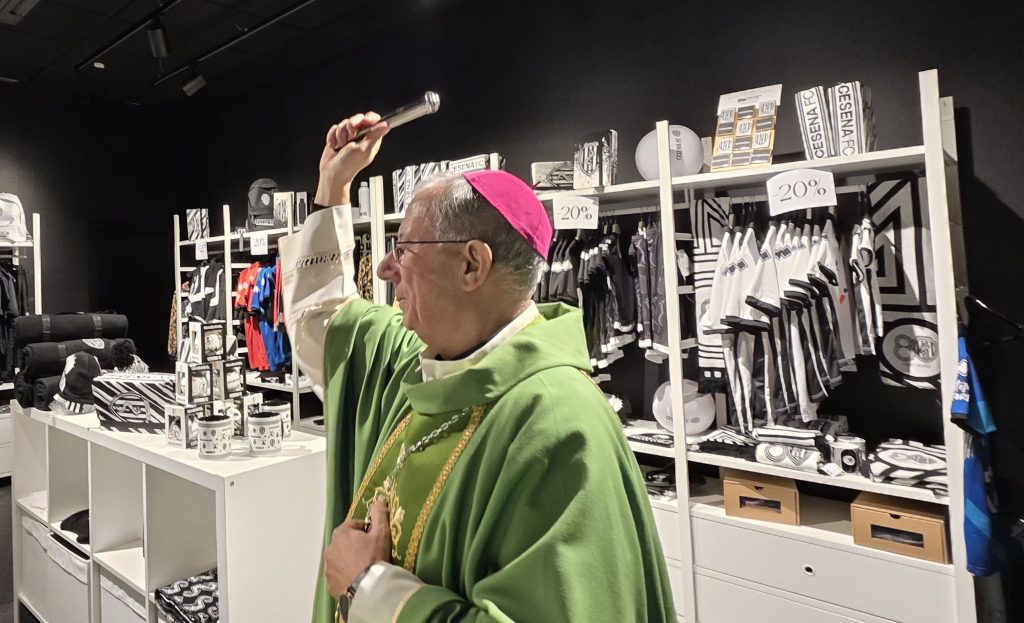 L’ha presieduta oggi, nel tardo pomeriggio, il vescovo Antonio Giuseppe Caiazzo nella nuova hospitality dell’Orogel Satdium Dino Manuzzi. A volerla sono stati i preti tifosi don Filippo Cappelli, don Paolo Foschi, don Maurizio Macini e don Giovanni Savini, che hanno concelebrato l’Eucarestia con il presule e che sperano presto in un Messa all’aperto con tutti i tifosi sugli spalti. Presenti oggi alcuni calciatori (Sphendi e Ciofi), la dirigenza della squadra e i ragazzi del progetto di inclusione sociale “Per un calcio integrato” con le loro famiglie.