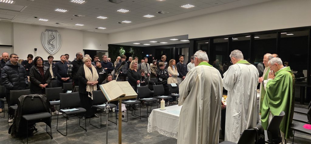 Prendendo spunto dalla prima lettura della liturgia odierna (la vocazione di Samuele), monsignor Caiazzo ha proposto un’analogia fra sport e vita. “Dire “eccomi” – ha evidenziato – significa “sono pronto”. È come quando si scende in campo. L’eccomi alla chiamata dell’allenatore diventa una presenza concreta. Il tuo eccomi si unisce all’eccomi di altre persone con cui fai squadra”, perché in campo, come nella vita, si scende insieme, mai da soli.