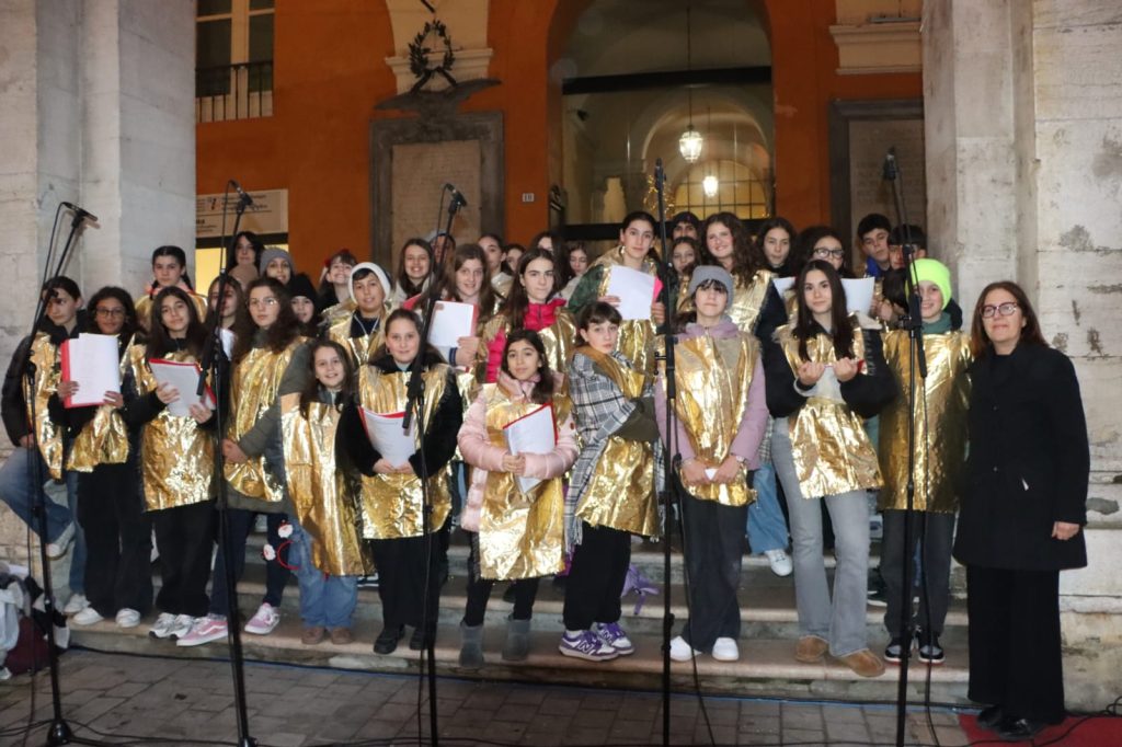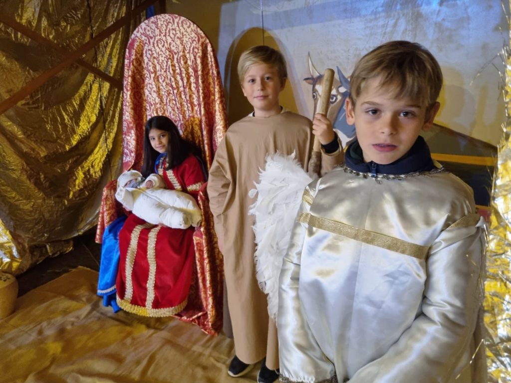 All’interno di un imponente allestimento scenico, gli alunni hanno fatto rivivere l’atmosfera del villaggio di Natale con banchi dei commercianti, casette dei mestieri e quadri viventi ispirati ai grandi momenti del racconto evangelico. I personaggi del presepe, interpretati dai bambini delle scuole dell’Infanzia e della Primaria, sono stati accompagnati dai canti e dalle letture dei ragazzi delle Medie.