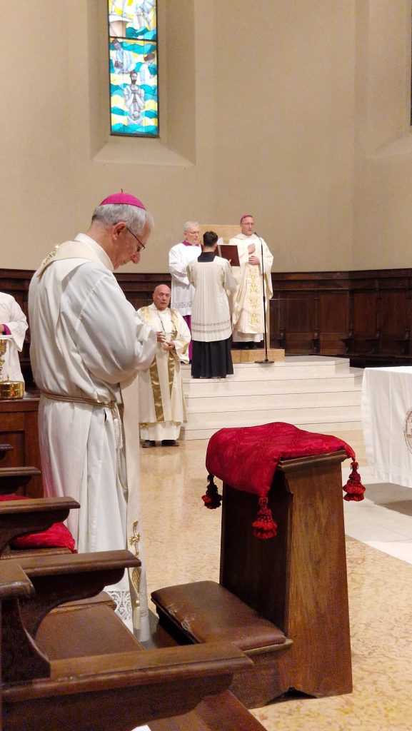 Ieri, domenica 19 aprile, la Cattedrale di Cesena ha ospitato la celebrazione della festa della Madonna del Popolo, patrona della Diocesi di Cesena-Sarsina. La Messa delle 11 è stata presieduta dall’arcivescovo Antonio Giuseppe Caiazzo e concelebrata dai canonici (cfr pezzo al link qui sotto). Alle 18 la Messa che ha concluso la celebrazione della festa della Patrona è stata officiata dal vescovo di San Marino-Montefeltro, monsignor Domenico Beneventi con l’animazione della Schola “Santa Cecilia” che ha eseguito la Messa “Salve Regina” a quattro voci di Valeriano Tassani (direttore il maestro Gianni Della Vittoria; all’organo, Terzo Campana).