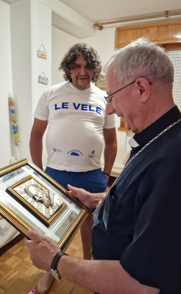 Fra gli ospiti, “Big Boss”, un algerino corpulento, ha regalato al presule un quadro di padre Pio che teneva in camera. Un giovane ha poi confidato al vescovo di aver perso i genitori nel naufragio di Cutro, con monsignor Caiazzo che ha ricordato di conservare una croce fatta con il legno di quei barconi, baciata anche all’ingresso in diocesi lo scorso 16 marzo.