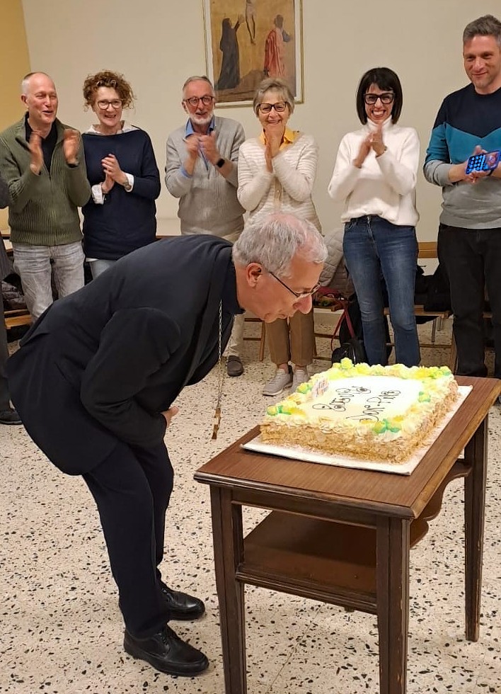 Al termine dell’incontro l’affettuoso augurio al nuovo vescovo con il brindisi e il taglio della torta per ricordare il suo 69esimo compleanno, festeggiato qualche giorno prima.