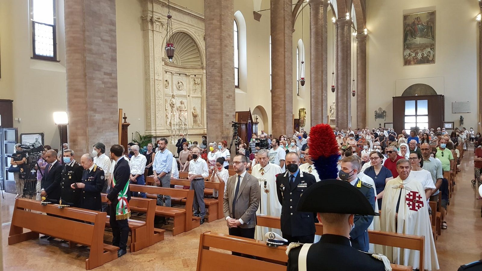 Tra i fedeli (foto qui sotto di Pier Giorgio Marini) il sindaco di Cesena, Enzo Lattuca, il vicesindaco Christian Castorri, Luca Mecchia in rappresentanza del prefetto, il comandante della compagnia dei Carabinieri di Cesena, Sabato Simonetti, il comandante della Compagnia della Guardia di finanza, Alberto Liberati, il direttore del Caps della Polizia di Stato, Bruno Di Rienzo, gli assessori al Comune di Cesena, Carlo Verona e Camillo Acerbi, il comandante della Polizia Municipale, Andrea Piselli.