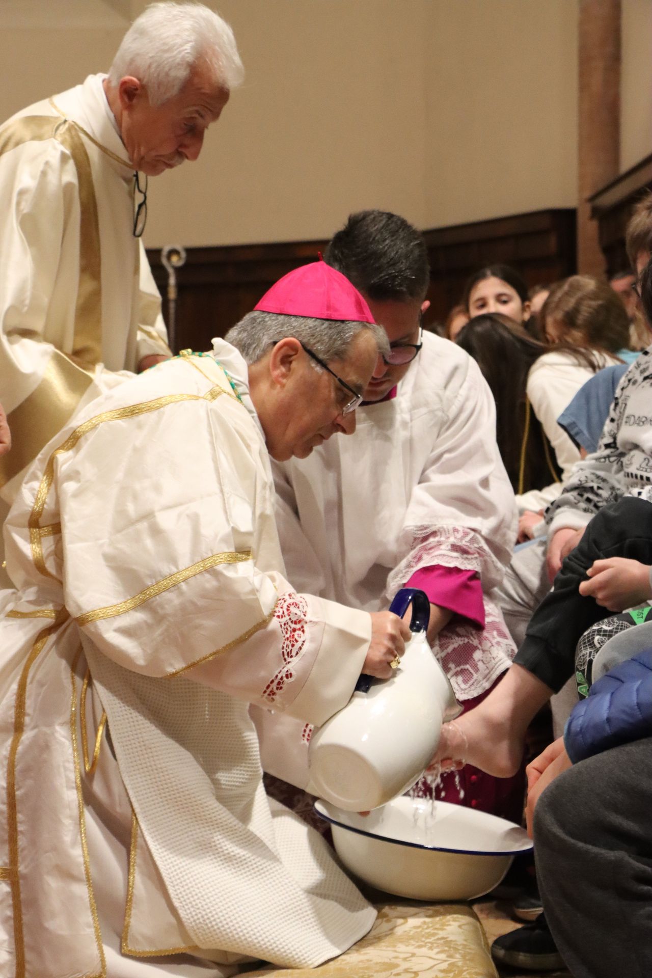 Il vescovo ha lavato i piedi ai bambini di Prima comunione