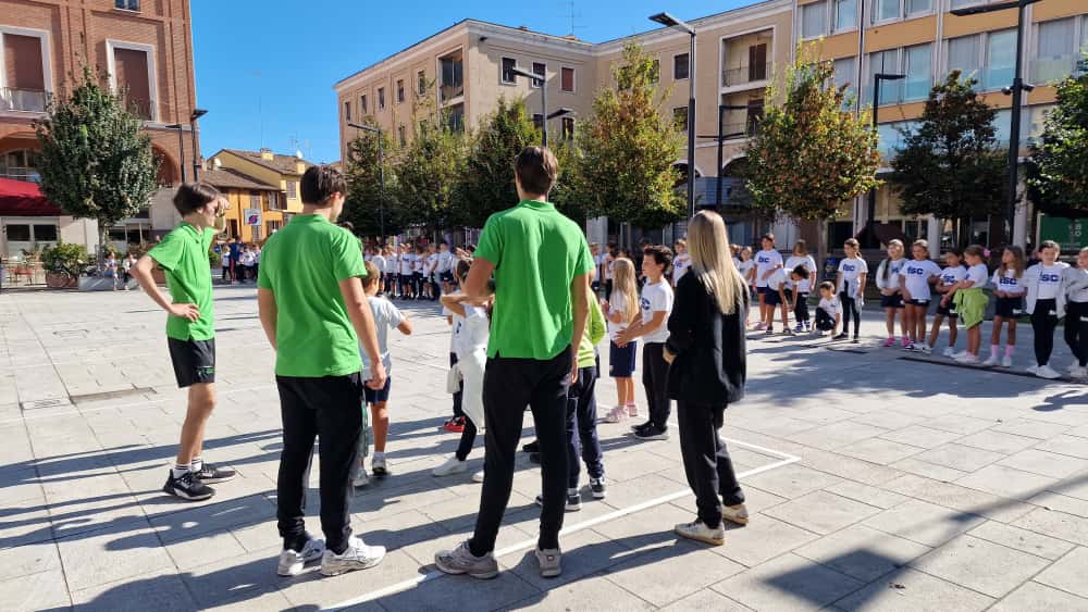 Questa mattina gli alunni e gli studenti di tutte le scuole paritarie del territorio cesenate si sono ritrovati in città per vivere alcuni momenti insieme. I piccoli delle materne e delle primarie si sono ritrovati davanti al municipio, in piazza del Popolo, dove sono stati salutati dall’arcivescovo Antonio Giuseppe Caiazzo e dall’assessora alla Scuola Elena Baredi. A seguire, l’animazione di Bimbobell.