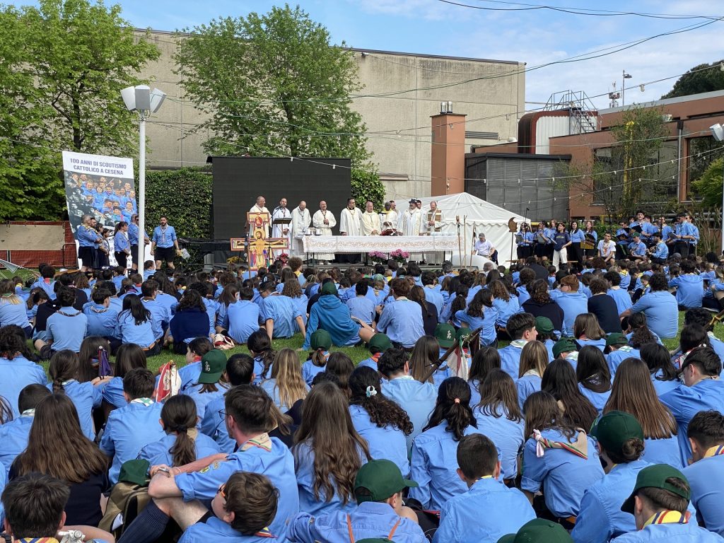 Oggi pomeriggio la Messa al termine della tre giorni per il centenario di presenza a Cesena. Monsignor Caiazzo: "Siete bellissimi". Il presidente nazionale: "Lo scautismo si incarna sempre, nei luoghi in cui viviamo". Il video dell'inno composto per l'occasione