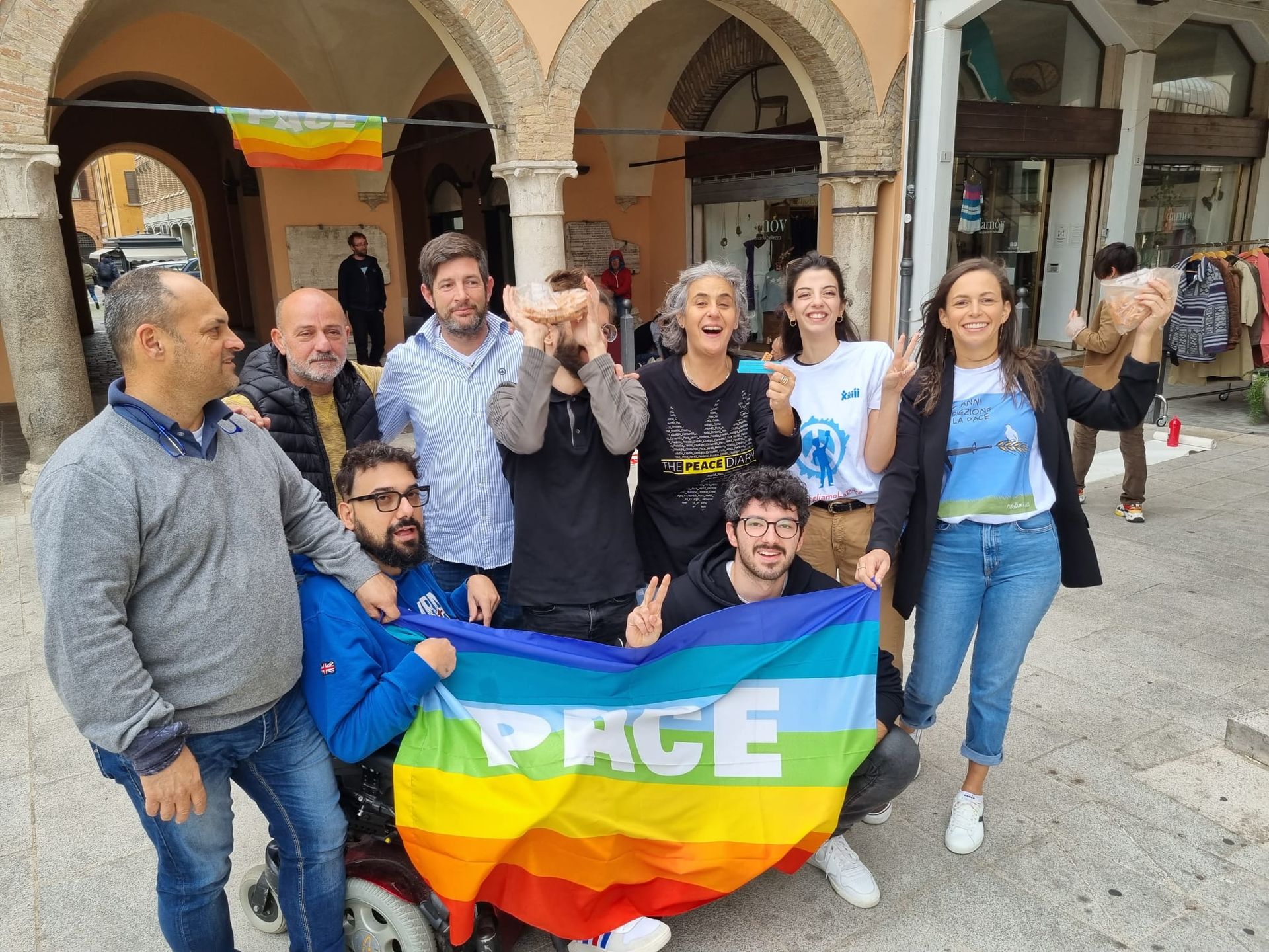 Insieme in piazza con ago, filo e un pezzo di stoffa per tessere la pace. È l’iniziativa, in corso fino alle 13 in via Giovanni XXIII, 1 a Cesena (nelle foto di Sandra&Urbano fotografi) promossa stamane, sabato 22 ottobre, da Europe for peace, la Rete Italiana Pace e Disarmo è nata il 21 settembre 2020 dalla confluenza di due organismi storici del movimento pacifista italiano, la Rete della Pace (fondata nel 2014) e la Rete Italiana per il Disarmo (fondata nel 2004) cui aderisce anche l’associazione Papa Giovanni XXIII.