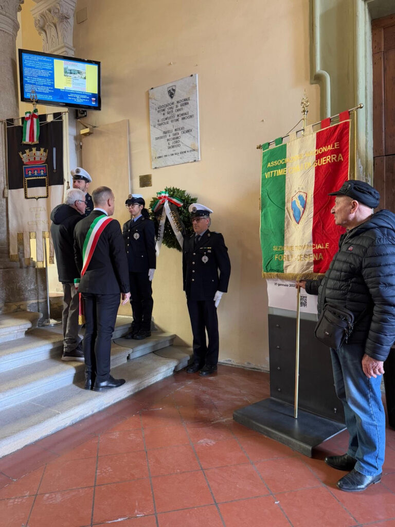 Nella mattina odierna, all’ingresso di palazzo Albornoz, si è celebrata la tradizionale cerimonia commemorativa partecipata dall’Associazione nazionale vittime civili di guerra di Forlì-Cesena, rappresentata dal presidente Gisberto Maltoni, e dal vicesindaco Christian Castorri, che insieme hanno deposto una corona ai piedi della lapide che ricorda le vittime civili della seconda guerra mondiale (solo nel cesenate 700 persone uccise e 1800 ferite e mutilate in modo permanente).
