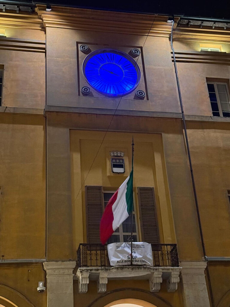 Raccogliendo l’invito di Anvcg e Anci, l’Amministrazione ha affisso uno striscione sulla facciata del palazzo comunale e illuminato di blu l’orologio comunale, aderendo alla campagna ‘Stop alle bombe sui civili’ chiedendo il rispetto e l’applicazione del diritto umanitario internazionale, e reclamando attenzione, giustizia e protezione per tutti coloro che soffrono a causa della guerra, ieri come oggi.