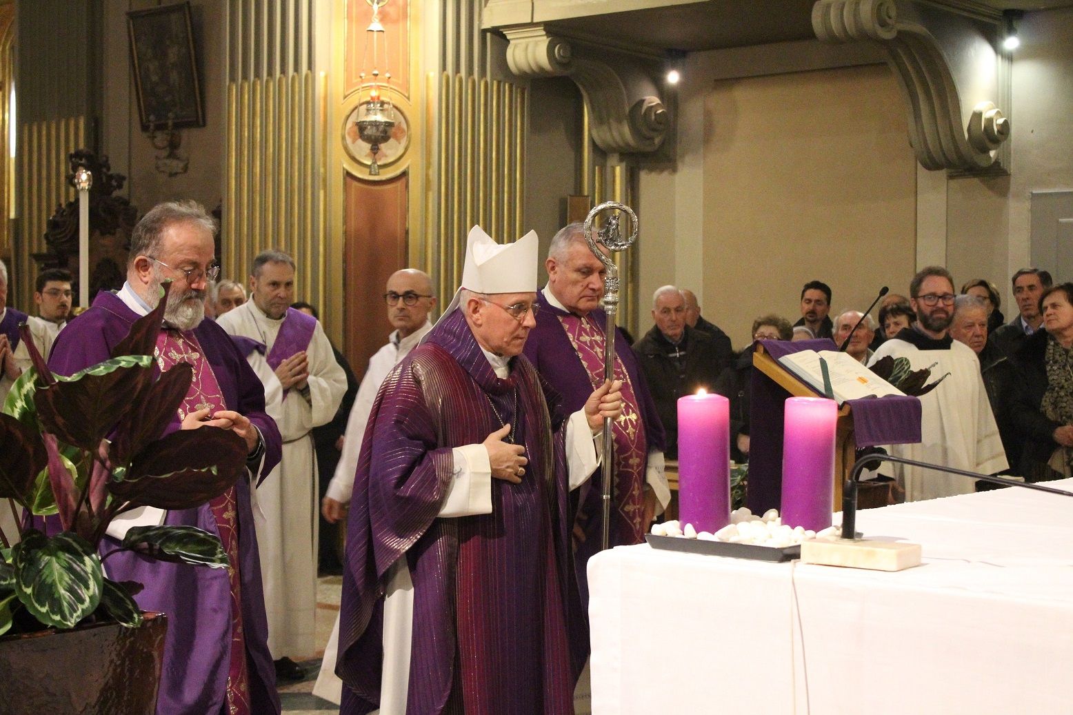 Monsignor Lino Pizzi, vescovo uscente di Forlì-Bertinoro, ha presieduto la Messa per la zona pastorale di via Cesenatico, Cervese e Ravennate. Centinaia i fedeli, accompagnati da parroci e diaconi, saliti a Longiano con tre pullman.