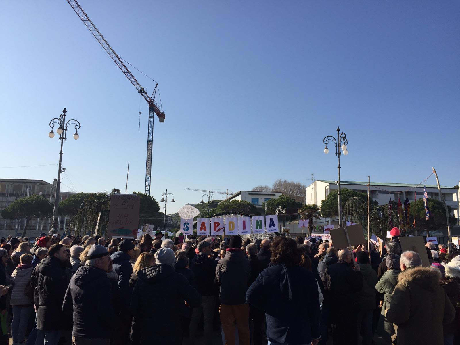In piazza Costa (foto sotto) si sono ritrovate le “Sardine” (qualche centinaio) a fare da contraltare al passaggio e al breve comizio del leader leghista.