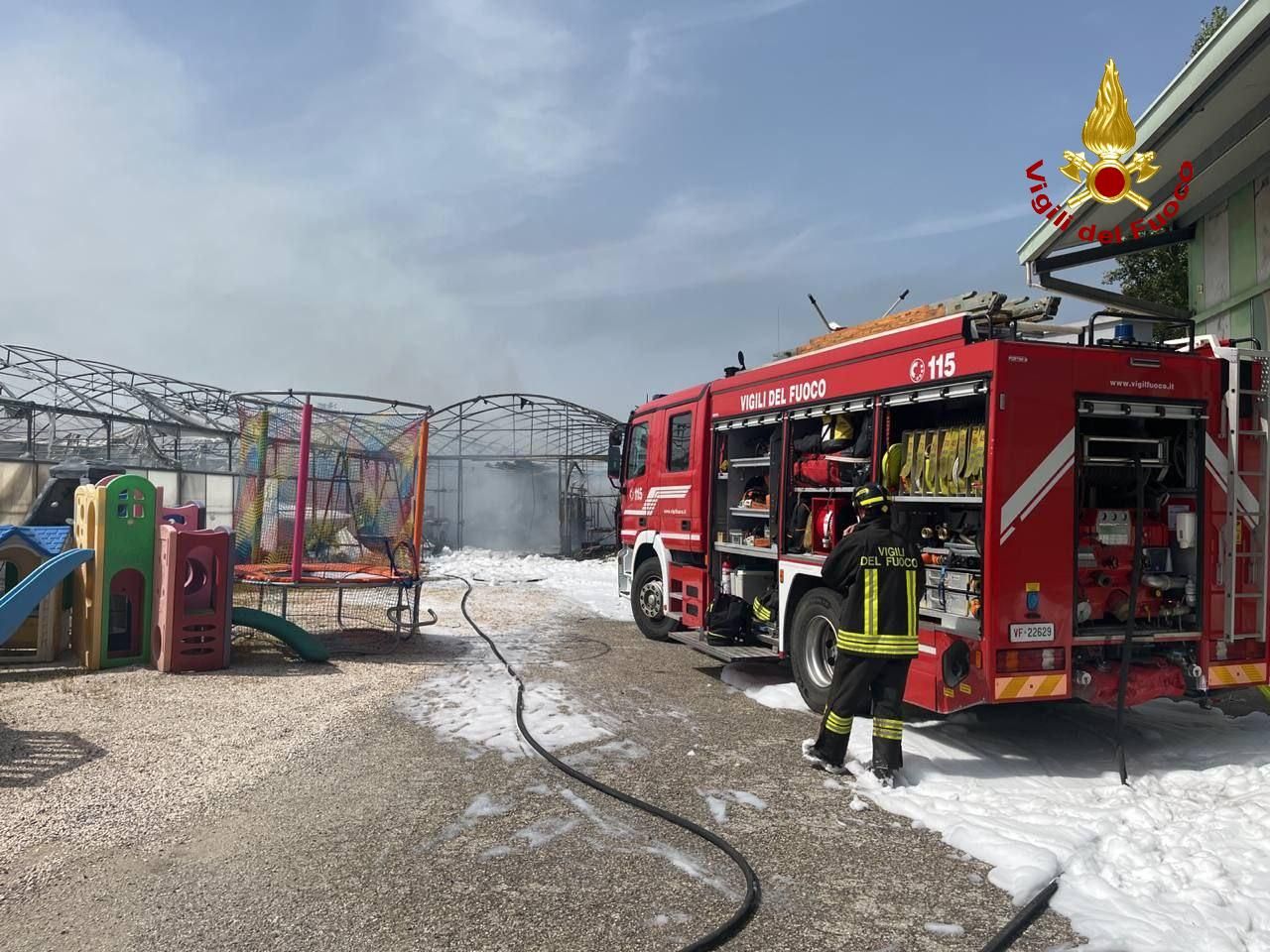 Incendio alle serre, intervengono cinque squadre dei Vigili del fuoco