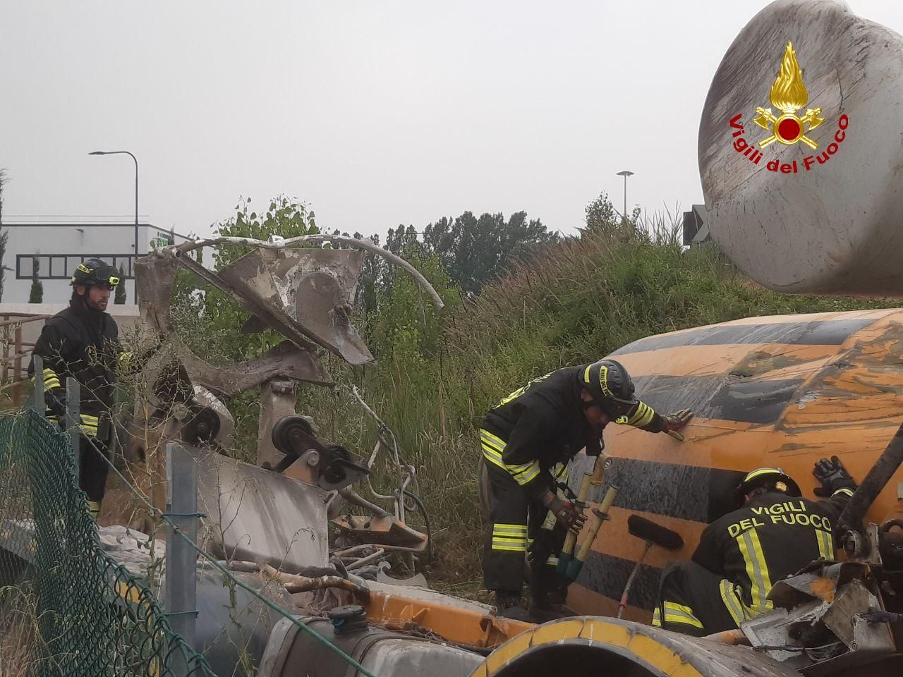 La squadra ho operato per mettere in sicurezza una betoniera uscita di strada, contenendo la fuoriuscita di carburante. Non risultano altri mezzi coinvolti.