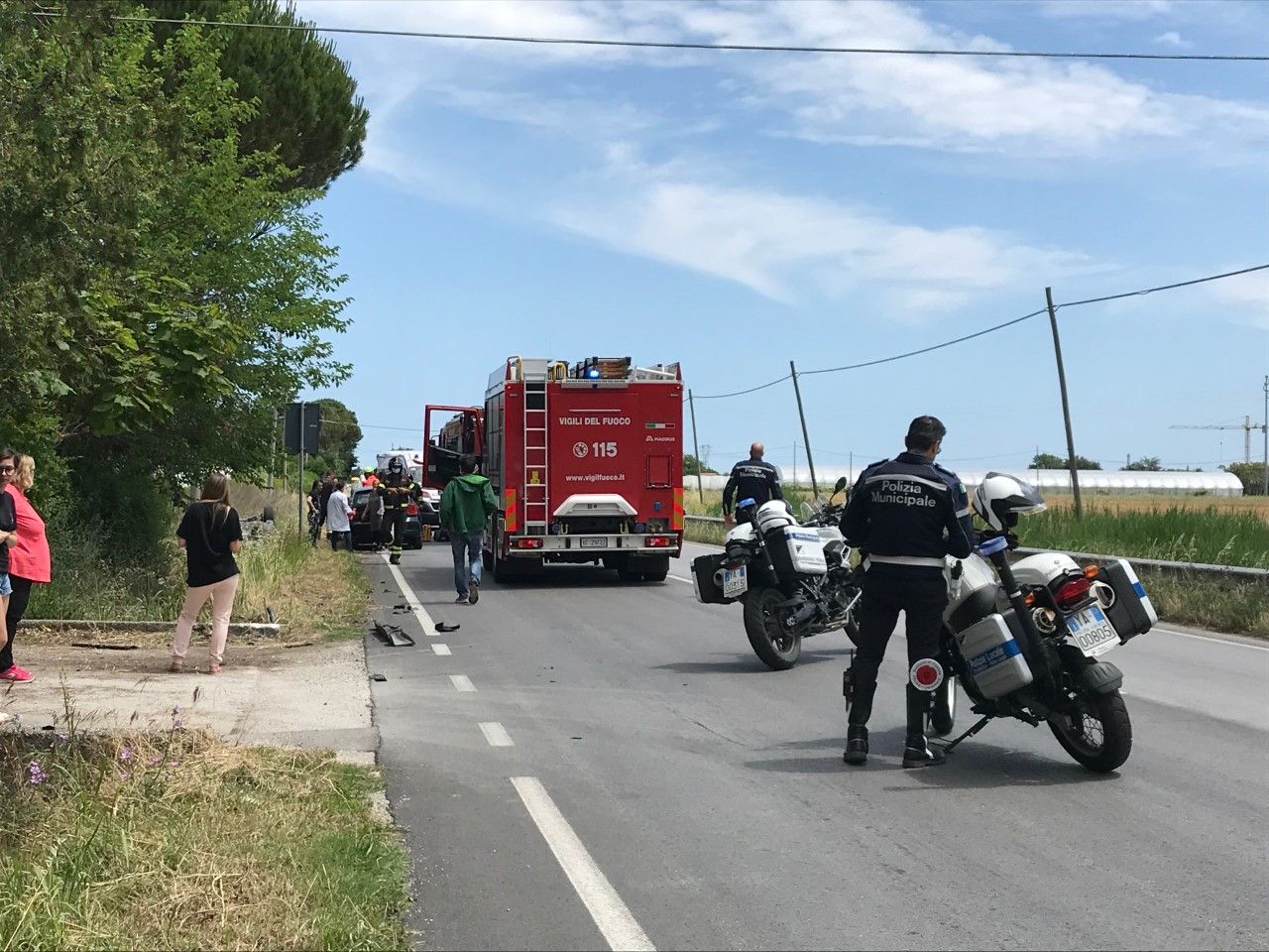 Oltre alla Polizia municipale, sul posto sono accorsi due mezzi dei Vigili del fuoco, l’ambulanza e anche un elicottero del 118 che è atterrato in un campo agricolo lì vicino.