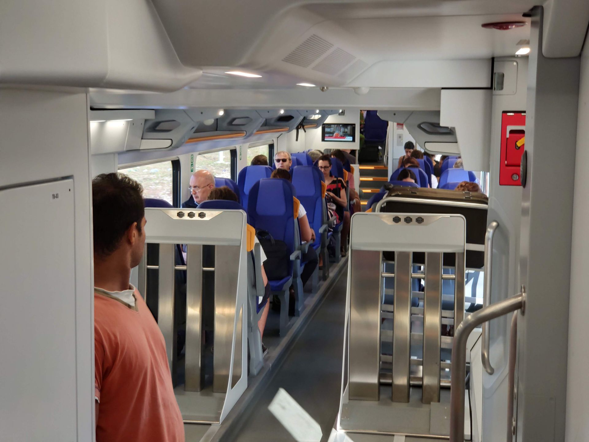 La capienza del treno, a due piani, è stata sufficiente ad accogliere tanto quelli che aspettavano il regionale quanto chi aspettava la Freccia.