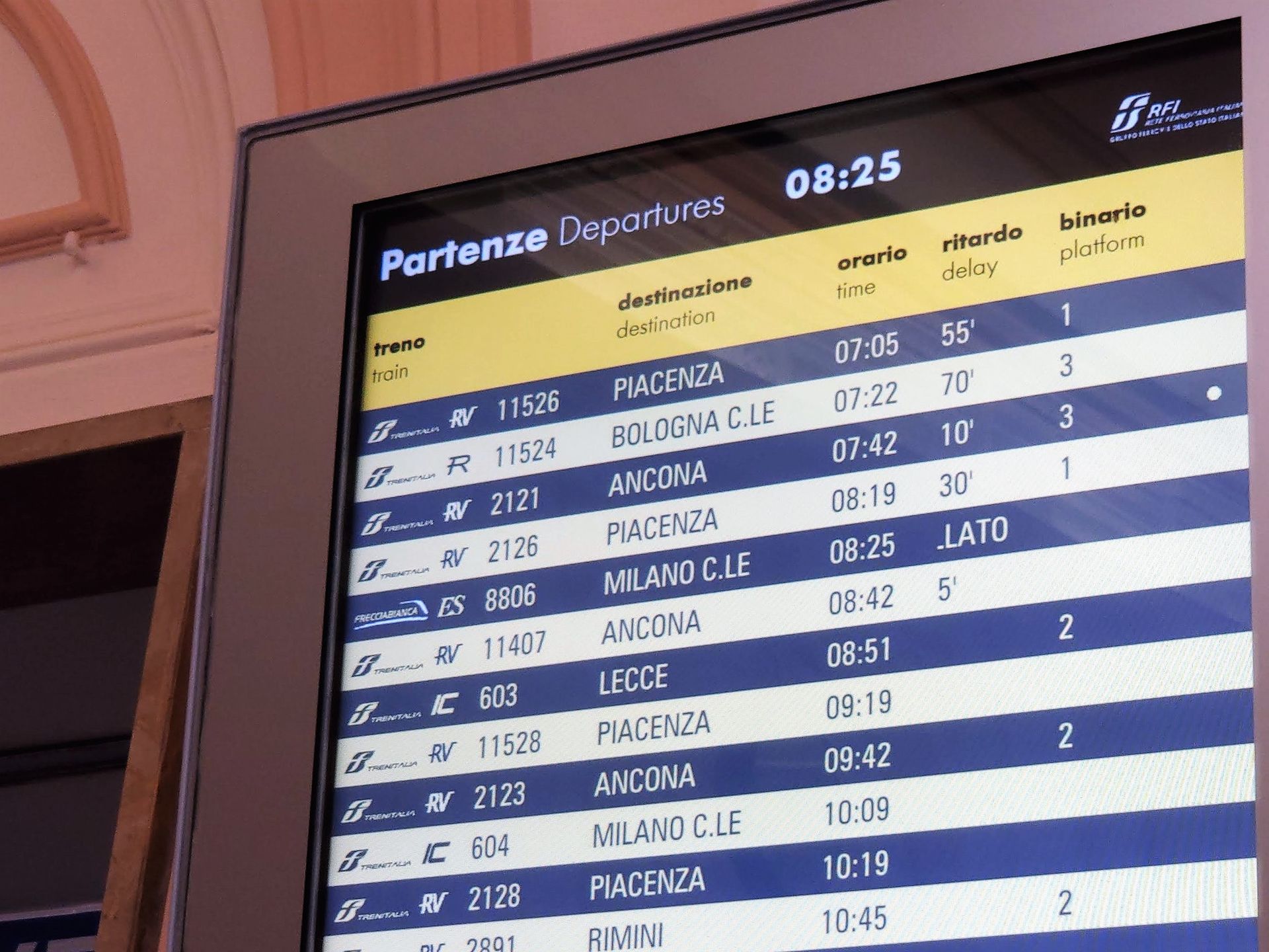 Cancellate le fermate di Cesena e Forlì per il Frecciargento delle 7,25 e il Frecciabianca delle 8,25, fermati a Rimini e poi deviati sulla costa per raggiungere Bologna via Ravenna.