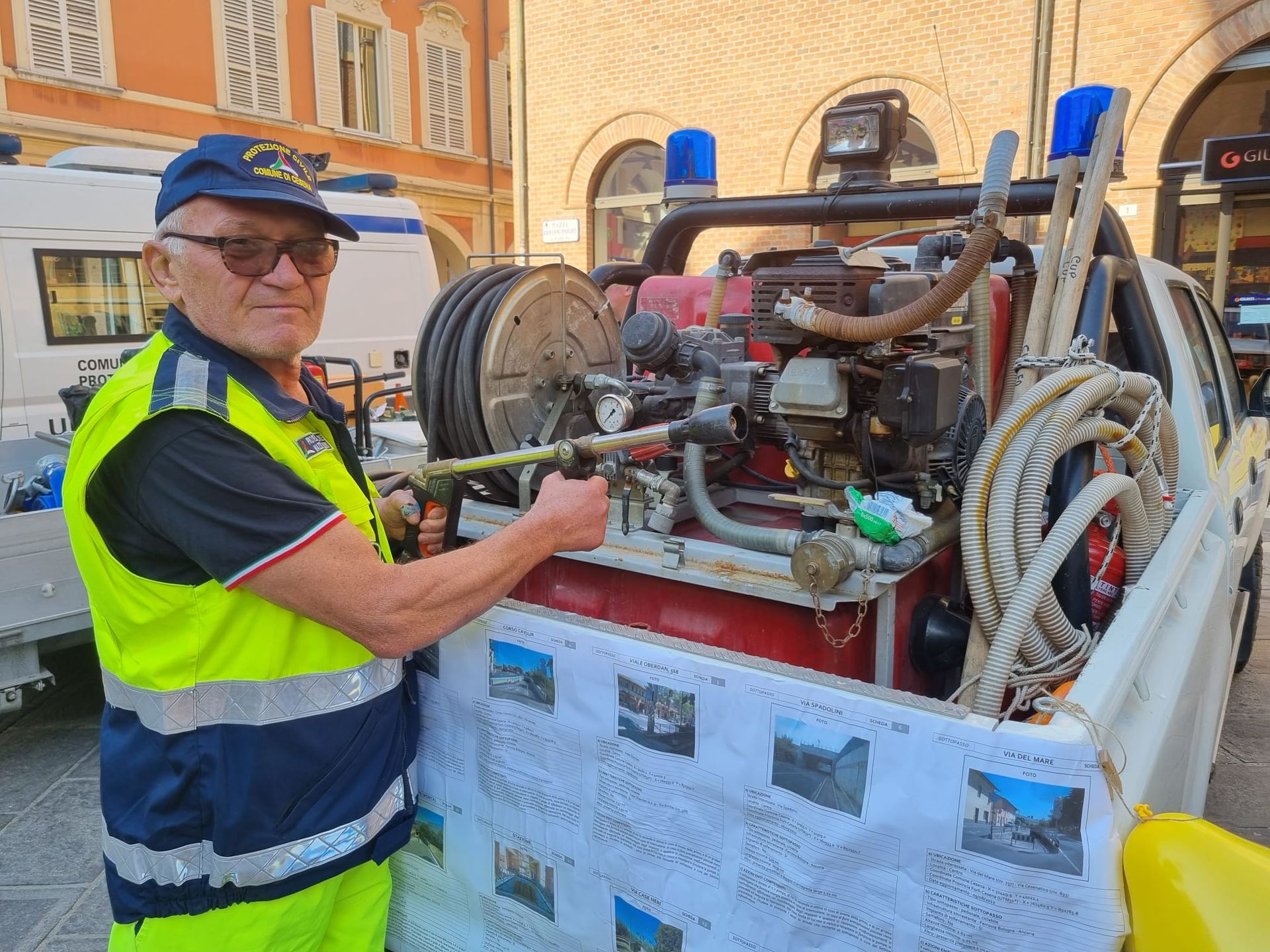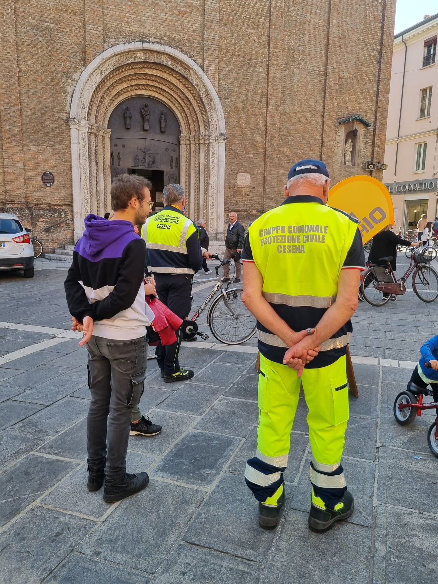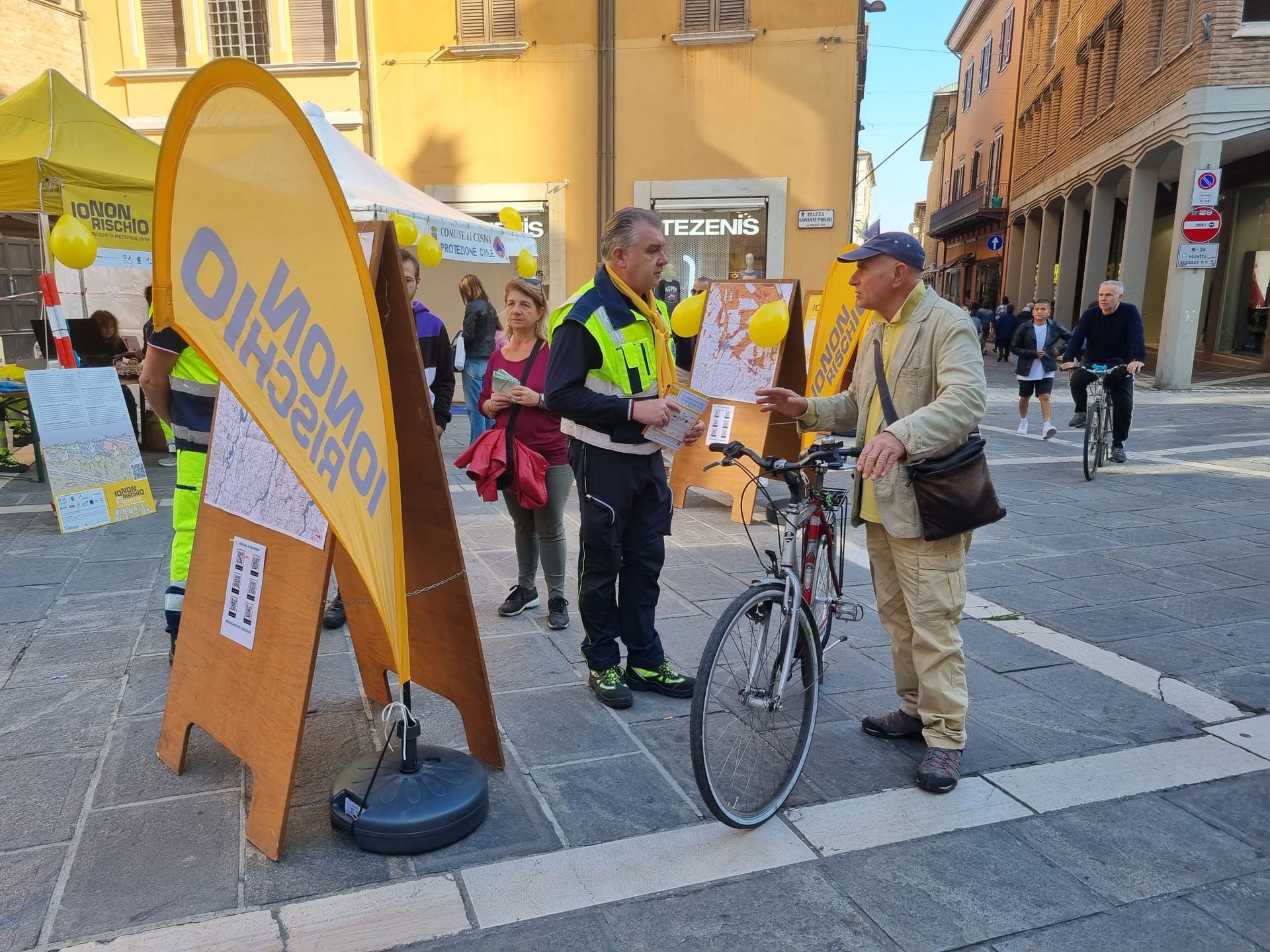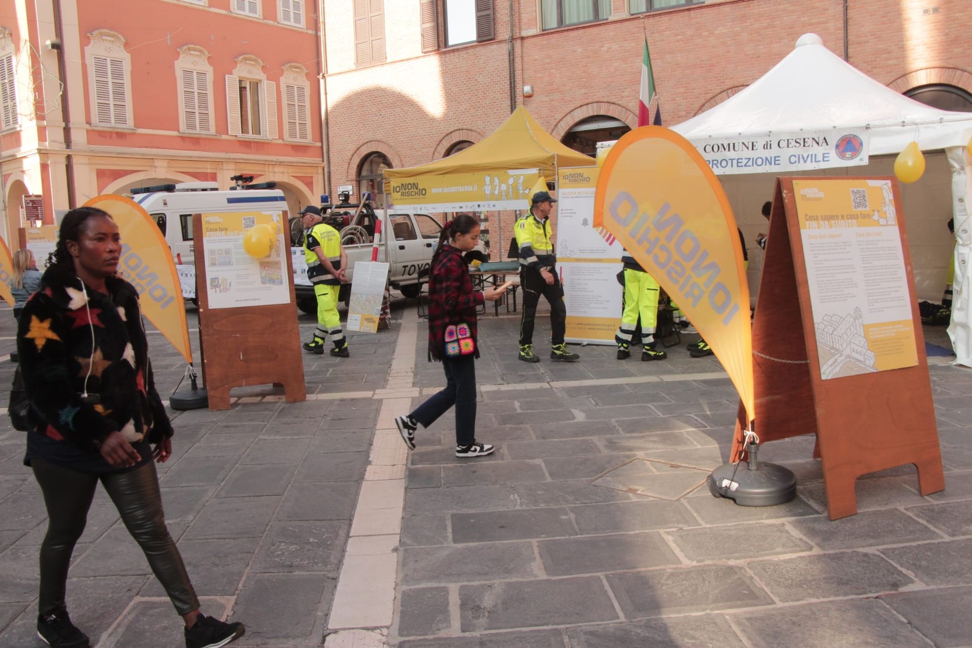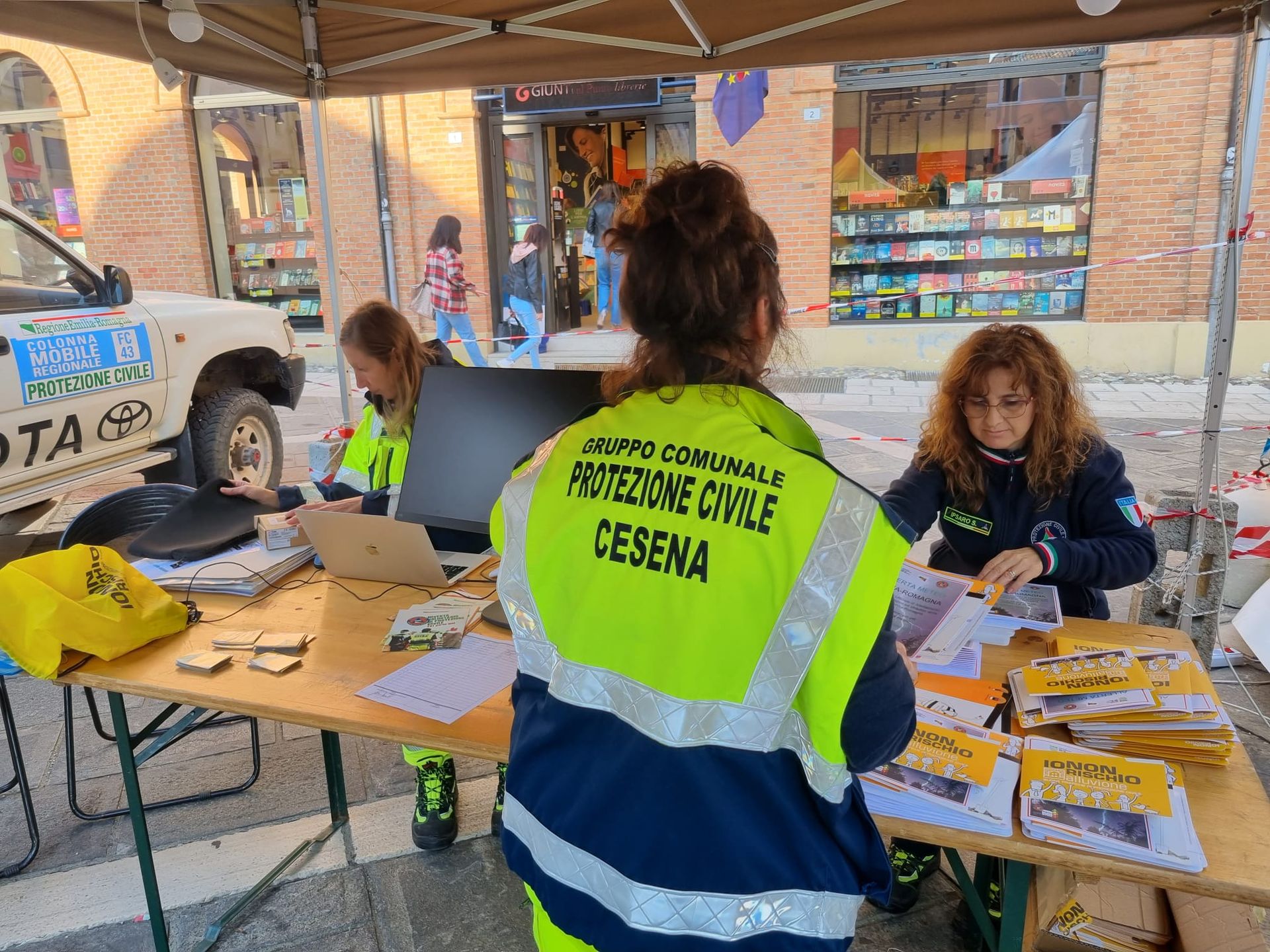 Questa mattina in piazza Giovanni Paolo II, davanti al Duomo, ha preso avvio la “maratona” del Gruppo comunale di Protezione civile di Cesena nell’ambito della due giorni (sabato 15 e domenica 16 ottobre) della campagna nazionale “Io non rischio”. Oltre al punto informativo i volontari illustreranno ai cittadini quali attrezzature e mezzi utilizzano nelle emergenze dedicheranno un’intera sezione didattica ai bambini, a cui sarà donato lo zainetto di emergenza. Per l’occasione anche il sindaco Enzo Lattuca ha portato i suoi saluti ai volontari e alle volontarie presenti in piazza.