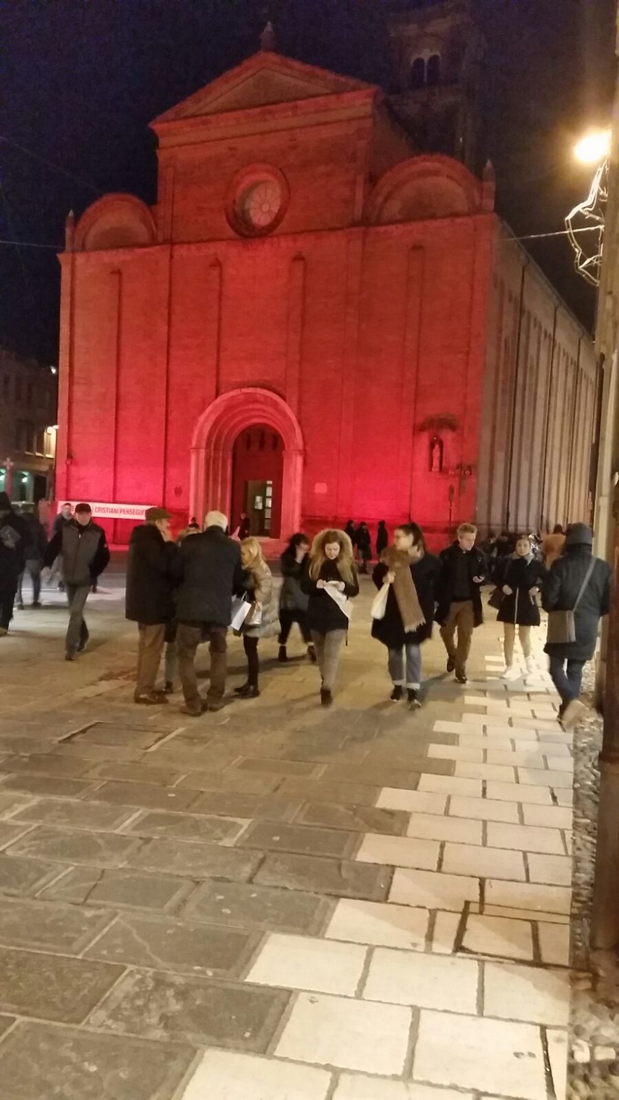 La Cattedrale di Cesena si tingerà di rosso per squarciare il velo dell’indifferenza sul martirio di tanti cristiani nel mondo – abbiamo scritto su questo sito qualche giorno fa riportando quanto fatto sapere dal Comitato Nazaret di Cesena che ogni 20 del mese si ritrova davanti all’edificio sacro per pregare per i cristiani perseguitati -. Nell’iniziativa odierna era coinvolto anche il Colosseo di Roma, con l’obiettivo di puntare i fari sulla questione della libertà religiosa. In contemporanea si sono tenute analoghe manifestazioni ad Aleppo, in Siria, e a Mosul, in Iraq.