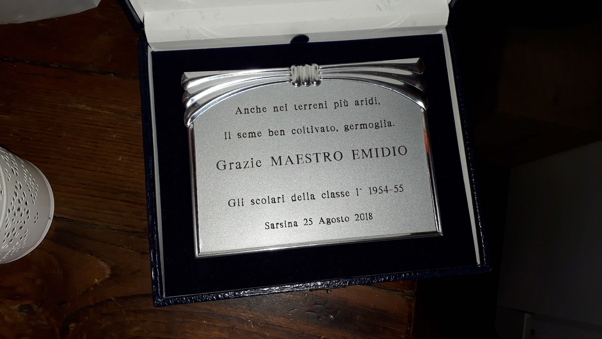 Alla fine della giornata è stata consegnata al maestro una targa ricordo con dedica.