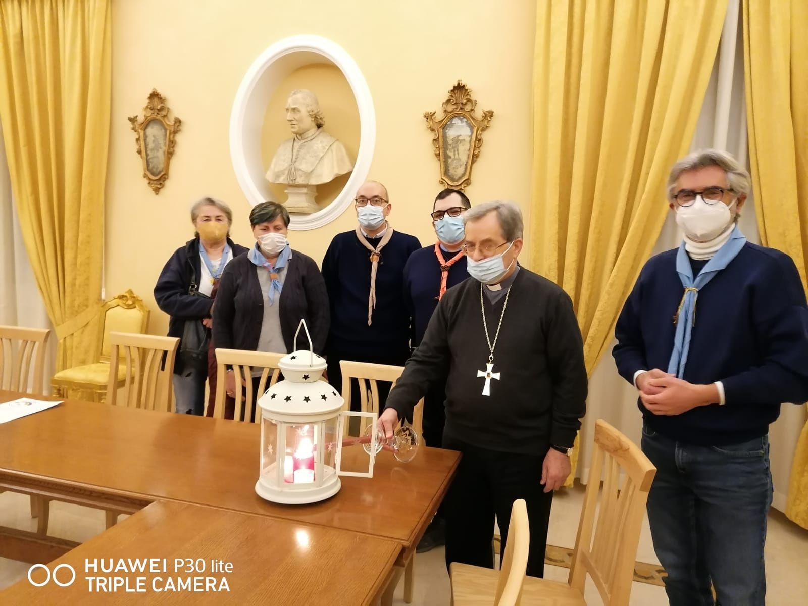 Anche a monsignor Regattieri gli scout hanno portato la Luce della pace di Betlemme. Insieme agli scout, il presule ha recitato la preghiera della pace.