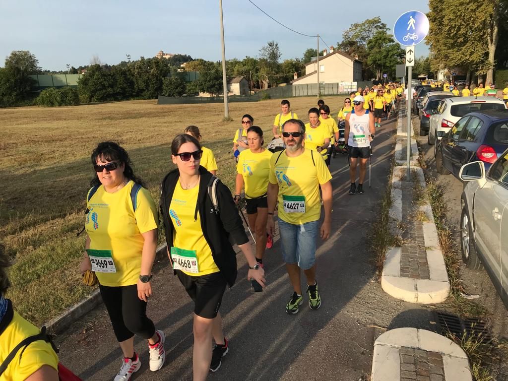 Nelle fotografie, il serpentone dei camminatori, a migliaia, subito dopo la partenza dallo stadio di Cesena per la 16 km fino a Cesenatico