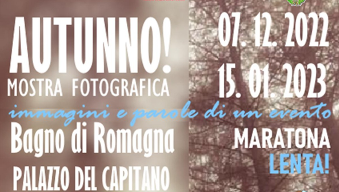 Mercoledì 7 dicembre alle 18.45 a  Bagno di Romagna, Palazzo del Capitano, sarà inaugurata la seconda esposizione della rassegna “Bagno d’arte” dal titolo “Autunno!”, fotografie dell’evento “Maratona lenta”, che si è svolto lo scorso 13 novembre.