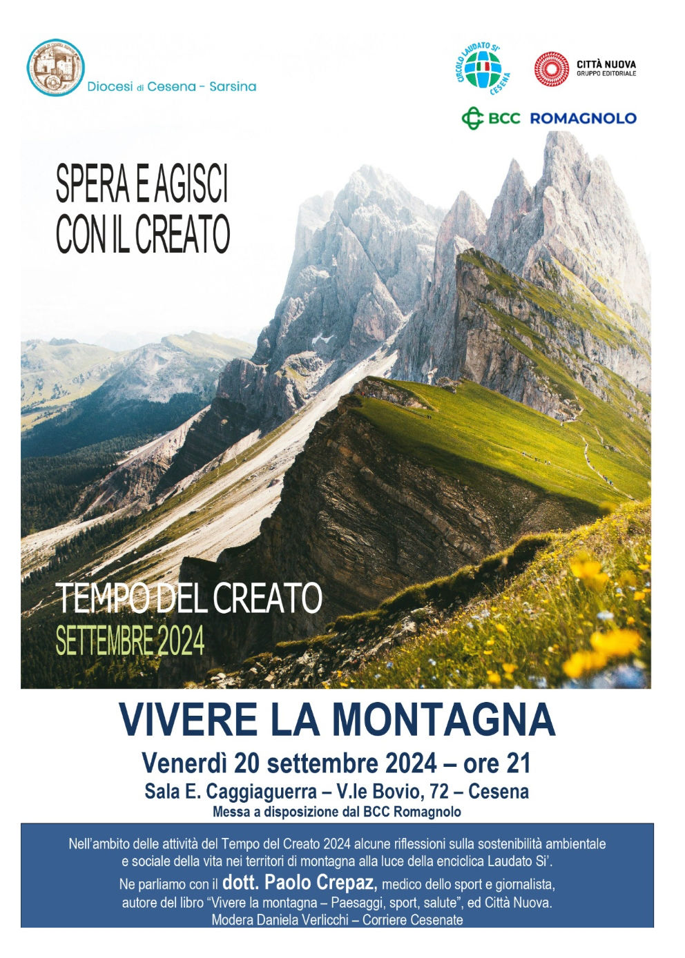 È stato un dialogo, quasi un racconto, l’incontro di venerdì sera 20 settembre nella sala “Cacciaguerra” della Bcc Romagnolo di Cesena, all’interno delle iniziative “Spera e agisci con il Creato” promosse nei giorni del “Tempo del Creato” dall’ufficio Gaudium et Spes della Diocesi di Cesena-Sarsina, dal circolo “Laudato si’” di Cesena, da Città Nuova, con il sostegno della Bcc Romagnolo.