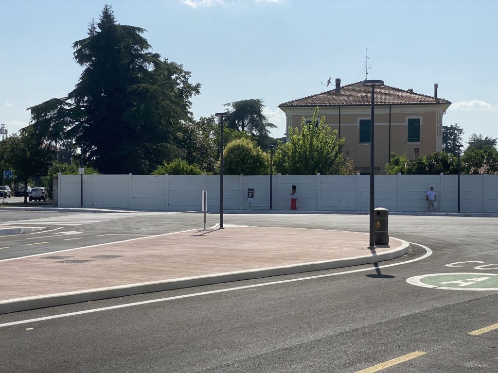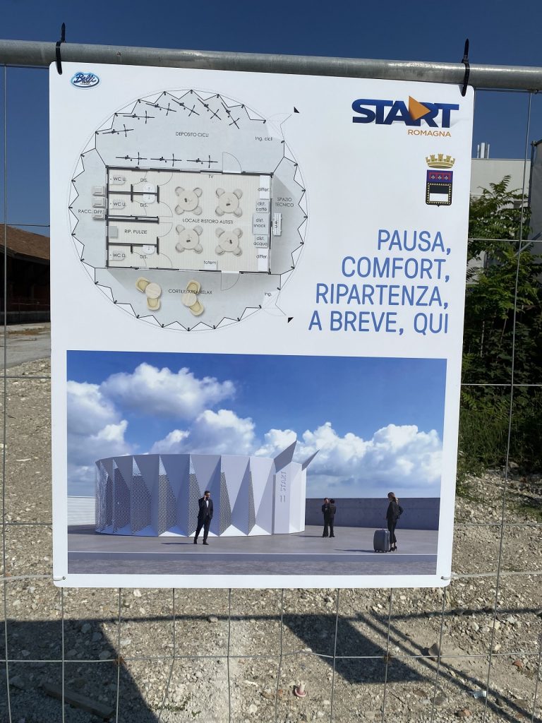 Come indica un cartello posto sul lato stazione, si vede come sarà il fabbricato per l’attesa e il ristoro dedicato agli autisti (foto qui sotto).
