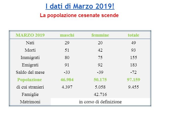 Anche nel mese di marzo da poco concluso i dati parlano chiaro: la popolazione cesenate scende.