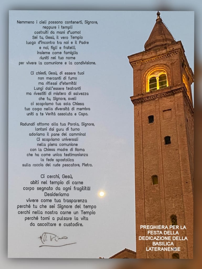 "Sei tu, Gesù, il Dio in noi ambito Paradiso", scrive monsignor Caiazzo per il consueto domenicale. E il testo della preghiera per la festa della dedicazione della basilica lateranense