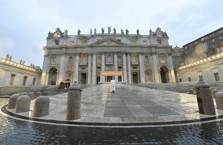 Mentre il Papa sale da solo, a piedi, le gradinate di marmo della basilica una notifica sul cellulare riporta, gelida, il numero dei morti delle ultime ventiquattr’ore, altre 969 vite strappate all’affetto dei loro cari, il numero più alto dall’inizio dell’epidemia. Il cielo è fosco, la pioggia sferza l’abito bianco di Francesco, infligge nuovi tormenti al corpo di quello stesso Crocifisso che mezzo millennio fa venne invocato dai fedeli contro la peste. Ed ora se ne sta lì, le braccia stese, le labbra aperte, vicino all’icona di Maria “salvezza del popolo romano” che una pia leggenda vuole dipinta dall’evangelista san Luca.