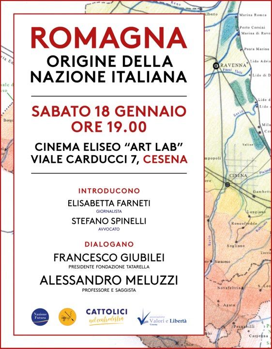 Dopo i primi due eventi molto partecipati con Marcello Veneziani e sull’identità italiana con Gervasoni, Fusaro, Bignami, sabato 18 gennaio alle 19 al Cinema Eliseo nella sala “Art Lab” in Viale Carducci 7 a Cesena, si terrà il convegno “Romagna. Origine della nazione italiana” con ospite il famoso psichiatra e saggista Alessandro Meluzzi che dialogherà con il presidente della Fondazione Tatarella Francesco Giubilei.