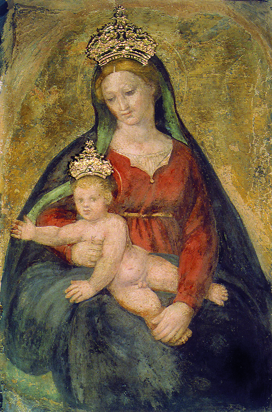 Nel 1573 il vescovo di Cesena Edoardo Gualandi decise di spostare all’altare principale della Cattedrale il Santissimo Sacramento che era posto nella prima cappella in fondo alla navata destra, seguendo in tal modo le indicazioni liturgiche del Concilio di Trento. Al suo posto fece collocare l’immagine di Maria Assunta. Ma i fedeli furono poco attratti dalla devozione per questa immagine. Al contrario, la gente, specialmente quella contadina e povera, era attirata da un’altra immagine, quella di una Madonna col suo “puttino” (Gesù Bambino) in braccio, che era stata collocata sul muro in una finestrella alla porta destra dell’entrata della Cattedrale. Questa Madonna raffigurata in affresco come una mamma col suo bambino era sentita più vicina alla sensibilità della gente, soprattutto dei poveri, che in quegli anni segnati da carestie e pestilenze (si ricorda in particolare il 1591 come anno particolarmente funesto), ricorrevano a Lei per invocare aiuto per la salute e per i lavori agricoli. E così la devozione popolare cresceva sempre più verso questa immagine della Madonna. Questo fatto colpì profondamente e commosse il vescovo Camillo Gualandi (nipote del precedente vescovo Edoardo), al punto che nel 1593 decise di far staccare l’affresco per riporlo nella cappella al posto dell’immagine dell’Assunta, dando così inizio alla devozione ufficiale nella chiesa Cattedrale della nuova immagine. Tale devozione ebbe il suo culmine nella solenne festa celebrata la domenica “in albis” del 1599, quando le fu dato ufficialmente il titolo di “Madonna del Popolo” e col quale da allora è stata sempre così onorata e venerata. L’autore dell’affresco è ritenuto Bartolomeo Ramenghi, detto il Bagnacavallo, che a Roma aveva collaborato come discepolo con Raffaello. Con la festa del 1599 ebbe inizio anche la Compagnia che si prendeva per statuto l’impegno di promuovere il culto della Vergine.