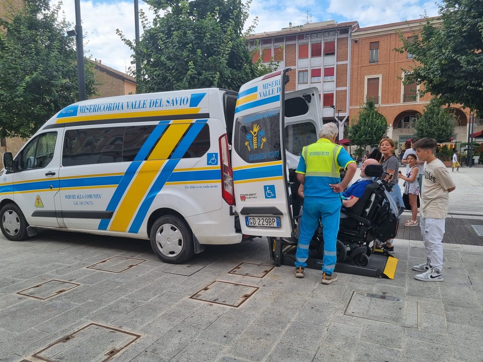I due volontari della Misericordia Valle del Savio, Federico Poli e Arnaldo Scarpellini (foto qui sotto) su istruzioni del loro presidente Israel De Vito arrivano con puntualità svizzera.