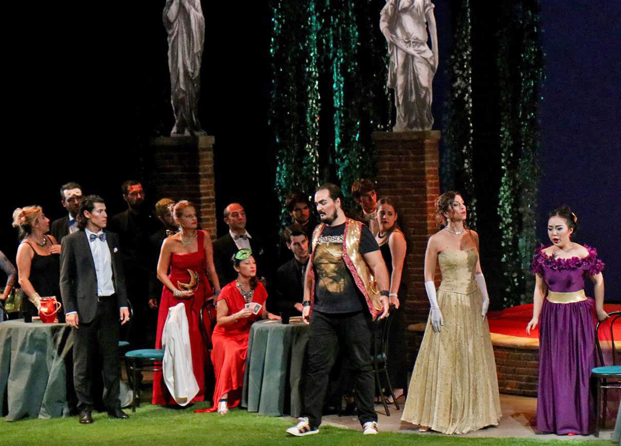 Il trio di protagonisti, il baritono Warg Xin (Germont), il tenore Zhu Yizhang (Alfredo), il soprano Chun Xi Hu (Violetta), benché molto giovani, hanno retto bene la scena. Particolarmente apprezzata la voce di Warg Xin e le capacità liriche e teatrali di Chun Xi Hu; la voce di Zhu Yizhang all’inizio della rappresentazione è stata un po’ sottotono, poi ha recuperato durante lo svolgimento del secondo e terzo atto. Bravi i numerosi comprimari, in particolare Elisa Gentili (Flora) e Alberto Ambrogiani (Gastone).