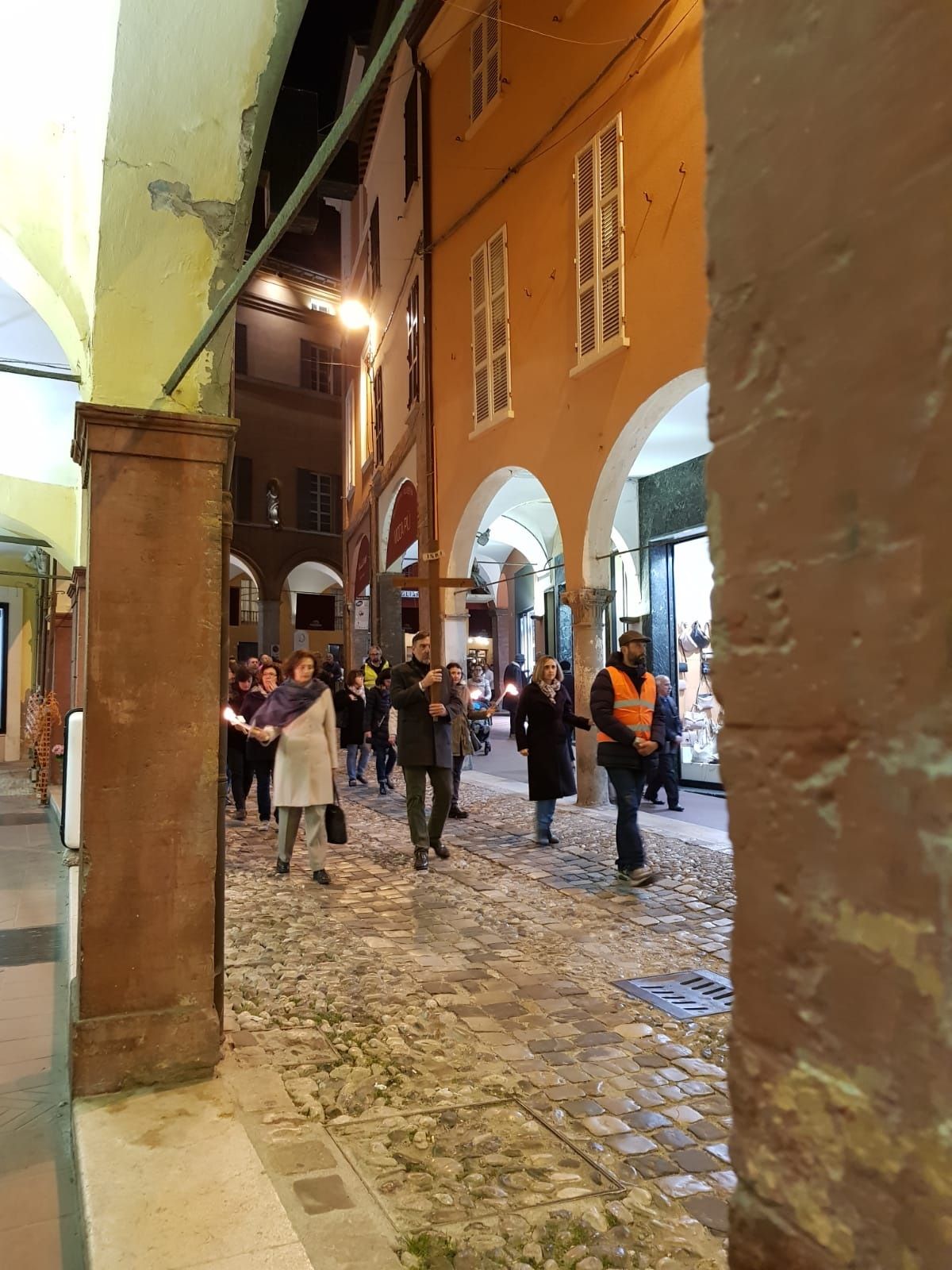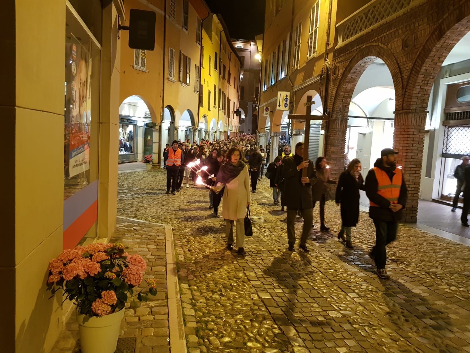 La Via Crucis per le vie del centro storico a Cesena. Il vescovo Douglas: “Cristo muore ancora oggi, sui barconi, nei bimbi mai nati…”