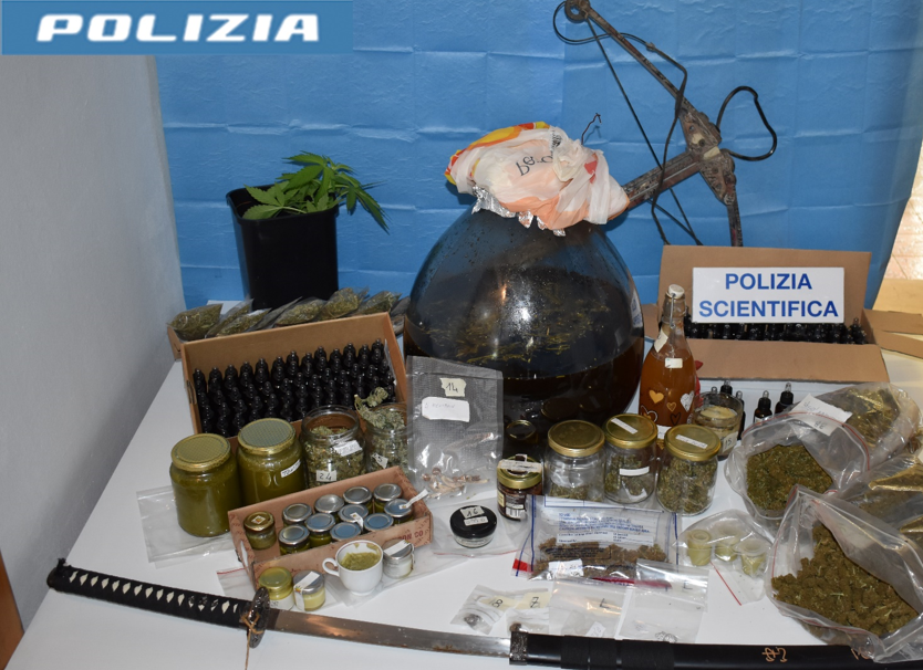 È presso l’abitazione che il personale di Polizia ha rinvenuto un vero e proprio laboratorio artigianale, dove l’uomo coltivava piantine di cannabis per poi lavorarle nei modi più svariati. Durante la perquisizione, il personale della Volante ha scoperto una notevole quantità di sostanza stupefacente lavorata e pronta alla vendita. In particolare sono stati sequestrati circa quattro chili di inflorescenza di cannabis, diverse piantine coltivate oltre a numerose boccette contenenti olio e crema di marijuana: il tutto pronto per essere messo in commercio.